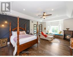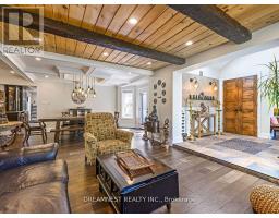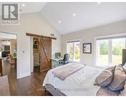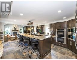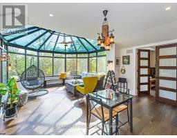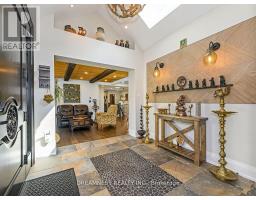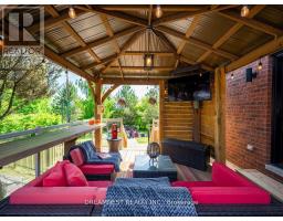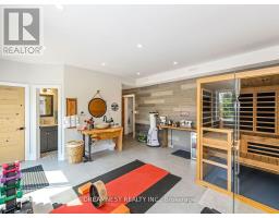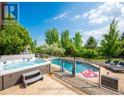 Nestled on a lush 1.67 acre lot in scenic Campbellville, this fully renovated 5 bedroom, 6.5 Bathroom bungalow perfectly blends contemporary farmhouse charm with luxurious resort-style living. Meticulously designed, this turnkey estate delivers an exceptional family estate and entertainer's paradise. Boasting over 6000 sq. ft. of finished living space, the gourmet chef's kitchen showcase top-of-the-line Thermador appliances, a Bosch built-in espresso machine, Miele double ovens, dual dishwashers, refined under-cabinet lighting - all seamlessly connected to a bright four-season sunroom, perfect for year-round enjoyment. The expansive primary suite provides a private sancturay featuring ensuite with dual rain shower heads with premium finishes. Main floor includes a dedicated spa wing with heated inground salt-water pool, hot-tub, sauna and fitness area with full bath, delivering an exclusive at-home wellness retreat. A private in-law suite offering a separate living room, bedroom with ensuite bath, and walk-in closet, perfect for multigenerational living or guest accommodation. The fully finished lower level includes a custom home theatre, bespoke live-edge bar, additional full bathroom, cedar-lined storage room, and secondary laundry - enhanced by designer millwork, barn doors, skylights, and upscale finishes throughout. Smart home technology is integrated via the Control4 system, offering complete automation and control of indoor and outdoor lighting as well as outdoor audio system, all accessible through a user-friendly app for seamless convenience. The professionally landscaped backyard is a true entertainer's dream, featuring a full outdoor kitchen, covered gazebo lounge, and cozy firepit area, surrounded by mature trees for ultimate privacy. Additional highlights include a detached barn, expansive manicured green spaces and a spacious three-car garage. (id:61594)