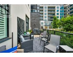 Step into the warm embrace of this extraordinary ground-level residence which provides 1,639sqft of living space, beautifully complemented by a spacious private terrace, your personal outdoor haven. From the moment you arrive at the grand entryway, the home's private ground-level entrance sets the tone for refined, yet accessible living. Inside, a sprawling open-concept floor plan awaits. Designed for effortless entertaining and day to day comfort. Beautiful hardwood floors throughout the principal living spaces, illuminated by pot lights and softened by the touch of California shutters. An electric fireplace anchors the living area, inviting you to unwind in style. A chef-inspired kitchen boasts quartz countertops, undermount lighting, soft-close cabinetry, and a stunning herringbone tile backsplash that adds the right touch of modern sophistication. Retreat to a custom primary bedroom showcasing exquisite woodwork and generous proportions. Lavish ensuite bathroom with luxury floor-to-ceiling tiles in the glass-enclosed stand up shower, and double sinks, evoking the feel of a five-star spa. This impeccable home is as functional as it is beautiful, offering ample storage, a dedicated locker, and two parking spots for added convenience. Location is everything, just a short walk to every imaginable amenity, restaurants, grocery stores, charming coffee shops, fitness studios, and more. Beyond the unit itself, the building offers an elevated lifestyle all its own. Enjoy access to a fully equipped gym, practice your swing year round in a state of the art golf simulator, or head up to the 13th-floor lounge, with pool table, outdoor terrace, and plenty of cozy spaces to unwind. The community is vibrant and welcoming, with regularly scheduled social events that make it easy to connect with neighbours and feel right at home. Every detail has been carefully curated to enhance your lifestyle. Come home to a timeless design, modern features, and a strong sense of community. (id:61594)