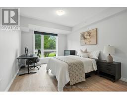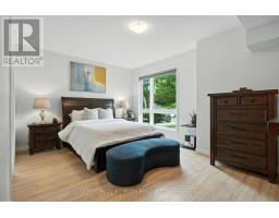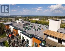 *2 PARKING STALLS INCLUDED* Welcome to The Gallery Condominiums -- Barrie's art-inspired condo community, where modern West Coast style meets thoughtfully curated design. Suite 112 is a beautifully upgraded and inviting ground floor unit, offering 1,374 sq. ft. of open concept living space, featuring 2 bedrooms, a den, and 2 full bathrooms. Perfect for those looking to downsize without compromise, this suite provides the ideal transition into condo living. Flooded with natural light from its south facing orientation, the oversized windows create a bright and airy atmosphere throughout. Enjoy serene views of the 14-acre forested park right from your bedroom windows. Step outside with ease through the patio doors onto your private terrace, a rare and convenient feature. Every detail has been carefully considered, with upscale finishes that include: 9' ceilings, Stainless steel appliances, Waterline to the fridge, kitchen backsplash, Glass-tiled walk-in shower in the primary ensuite, Designer lighting, Fresh paint throughout and much more. As a resident of The Gallery Condominiums, you'll also have exclusive access to the 11,000 sq. ft rooftop patio, a spectacular space to entertain, relax, and take in panoramic views of Barrie and Kempenfelt Bay. Located just minutes from Highway 400, shopping, dining, and the Rec Centre, this home blends luxury and convenience in one exceptional package. Welcome to elevated condo living. Welcome home. (id:61594)