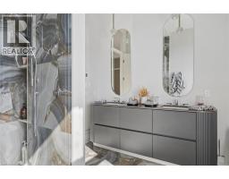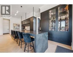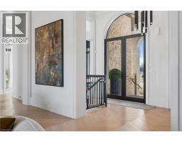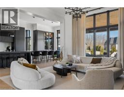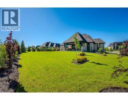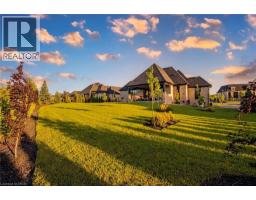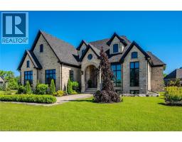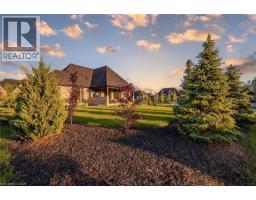Set within the exclusive gated community of Heritage Lake Estates, this extraordinary custom-built natural stone bungalow offers refined luxury on a private half-acre lot just steps from the lake. Perfectly positioned only minutes from Highway 401 and close to schools and amenities, this home delivers both privacy and exceptional convenience. From the moment you enter, the home impresses with 12-foot ceilings, striking chevron hardwood flooring, dramatic custom lighting, and a stunning fireplace feature wall. Expansive floor-to-ceiling windows flood the home with natural light, creating an atmosphere that is both sophisticated and welcoming. With over 4,200 square feet of impeccably designed living space, the home offers 4 spacious bedrooms and 5 luxurious bathrooms, along with heated floors and premium finishes throughout. At the heart of the home is a show-stopping chef’s kitchen designed for grand entertaining, featuring built-in appliances, a walk-in pantry, and an impressive 20-foot granite island with seating for up to 15 guests. The private primary retreat offers a serene escape with a spa-inspired luxury ensuite and a custom walk-in closet with built-in cabinetry. The fully finished lower level continues the home’s exceptional design with nearly 10-foot ceilings, oversized windows, radiant heated hardwood floors, and a cozy gas fireplace, creating the perfect space for entertaining, relaxing, or hosting guests. Outdoors, enjoy the beautifully landscaped grounds, complete with irrigation, an oversized covered patio for year-round outdoor living, and an expansive three-car garage with additional driveway parking for 6–8 vehicles. Net-zero ready and fully smart-wired with fibre optics and natural gas, this forward-thinking home blends timeless craftsmanship with modern technology. A rare offering where architectural elegance, thoughtful design, and premium craftsmanship come together to create a truly exceptional home. (id:61594)