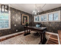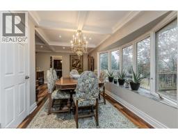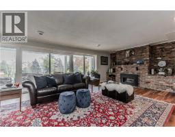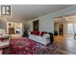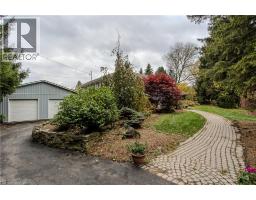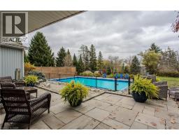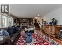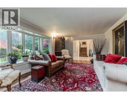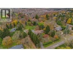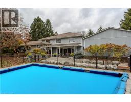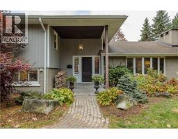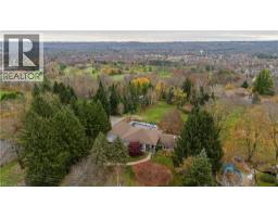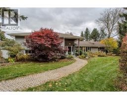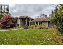 Welcome to this charming 4-level side split, originally crafted for the Grafton family in 1954. Situated on a serene 1.09-acre lot, this property boasts privacy and beauty with mature trees, a long driveway, and ample front yard space accommodating parking for 10+ vehicles, including a 20x40 garage with a lift. Perfectly located, it’s just 3 minutes from Dundas Valley Golf & Curling Club, 5 minutes to quaint downtown Dundas, and close to scenic trails, waterfalls, and major routes. Inside, find a bright, welcoming ambiance with hardwood throughout. The eat-in kitchen leads to a dining room with elegant coffered ceilings. The Great Room on the main level is a showstopper, featuring floor-to-ceiling windows, a wood burning fireplace, one of 5 fireplaces in the home, and an adjoining family room —ideal for gatherings. Upstairs, enjoy a private primary sanctuary with views of the escarpment with a 4-piece ensuite, alongside an additional 3-piece bath with a glass shower. The lower level offers a partially finished walkup with a billiard room, which could be used as a fourth bedroom, patio access, storage, utility room, and a rough-in for a washroom. Outdoors, a private backyard oasis awaits, complete with a hot tub, a recently painted (2024) in-ground pool, and expansive views of the escarpment and golf course. New furnace installed in 2022. Don't miss this exceptional Greensville home! (id:61594)