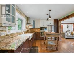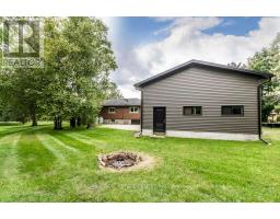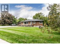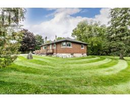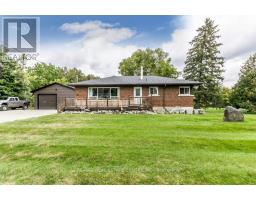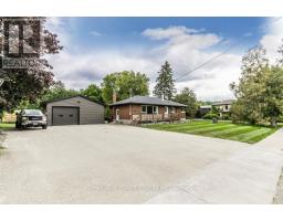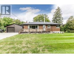 Gorgeous upgraded open concept brick bungalow with a huge garage/workshop on half an acre in picturesque village of Eden Mills. The expansive eat-in kitchen is enhanced with rich cabinetry with undermount lighting, stunning granite counters with farm-style sink inset, stone backsplash, and movable island. Stainless steel built-in microwave, built-in oven, countertop range, stainless steel hood fan and stainless steel refrigerator. The kitchen overlooks the vast living room with huge picture window. Rich hardwood floors and barn beam accents compliment the main floor with huge primary bedroom, second bedroom and a renovated four piece bathroom with heated floors and luxurious ceramics. The lower level offers a huge recreation room, spacious bedroom and a recent three piece washroom with built-in laundry. Lots of storage available in the utility room and in the furnace room. The massive garage/workshop has 220 amp power, room for more than four vehicles and a second garage door to the side opening to the private backyard oasis. Notable features: new propane furnace and water heater (December 2024), waterproofed basement, 125 amp house panel, attic insulation (June 2024), new bathroom/laundry room (October 2024), new soffits, facia and eavestrough on house and shop (June 2024), 500 sq.ft. addition to shop (June 2024), new siding on shop (June 2024). A truly awesome opportunity to live in a quiet village setting. (id:61594)