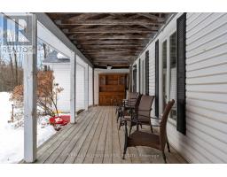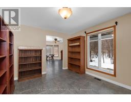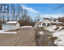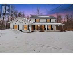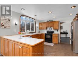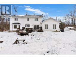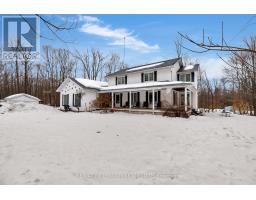 Approximately 2,500 square feet of above-grade living space, along with a fully finished basement, all situated on beautiful 1.7-acre lot surrounded by mature trees. The geo-fencing system is a valuable added feature for pet owners, and the double attached garage combined with the separate detached workshop provides excellent flexibility and functionality. The main floor features a welcoming, open-concept eat-in kitchen and dining area, complemented two-piece by a warm and inviting family room with a cozy wood stove. Main-floor laundry and powder room add convenience, while the private office with its own entrance offers excellent potential for a home-based business or quiet wor workspace. Upstairs, you will find four spacious bedrooms and two full bathrooms, including a primary suite with its own ensuite and jetted jacuzzi tub, a feature that will certainly appeal to larger families seeking comfort and space. The finished basement includes a second kitchen, a bright and spacious living area with windows, full bathroom including another jetted jacuzzi tub and three generously sized dens that can easily function as additional bedrooms. The second driveway along the side of the home, already established as a gravel drive, adds further accessibility and convenience. The partially wraparound porch provides additional outdoor living space to relax and enjoy the surrounding property. (id:61594)