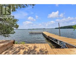 Stunning waterfront retreat on desirable Sharbot Lake. This fully renovated log home sits on a private 3.1-acre lot with mature trees, rocky shoreline, and peaceful views. Featuring 4 bedrooms, 2.5 baths, and upscale finishes throughout, including a heated ensuite floor, the home offers bright open-concept living with large windows showcasing the landscape. The property includes a detached garage with carport and loft, plus a versatile 1,080 sq ft auxiliary building with a cozy Bunkie, new bathroom, and flexible space for a workshop, studio, or recreation. Both main and auxiliary buildings have 200-amp service. Enjoy privacy, natural beauty, and year-round lake living-perfect as a family retreat or investment property. Move-in ready and waiting for you! Please do not visit property without a licensed Realtor. (id:61594)