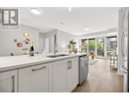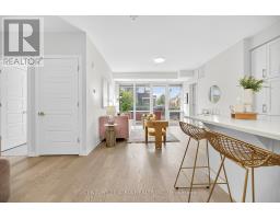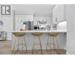 Welcome to this modern boutique condo building located in the highly sought-after Rural Oakville. This stunning unit offers two spacious bedrooms, two bathrooms, and an upgraded kitchen with newer appliances. The primary bedroom is large enough to accommodate an office space, featuring a walk-in closet and bright windows. Large windows throughout the unit bring in an abundance of natural light, while the high ceilings and open-concept main room create a refreshing and spacious atmosphere. A standout feature of this unique ground-floor unit is the large walkout terrace, perfect for hosting family and friends for spring, summer, or fall gatherings. Building amenities include a gym, pet station, lounge, rooftop patio with BBQs, a party room with an elegant setup for dinner parties, and ample visitor parking. The laundry machine is new, and the kitchen appliances were upgraded one year ago. Conveniently located near restaurants, shops, schools, and Highway 407/403, this condo offers both comfort and accessibility. With one of the best layouts and largest terraces in the building, this unit is a must-see! One parking and one locker included. (id:61594)