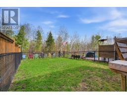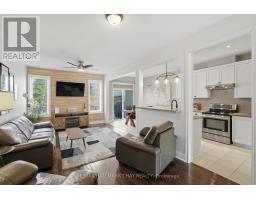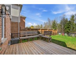 Backing onto trees with no rear neighbours, this beautifully maintained townhouse offers the perfect blend of privacy, modern finishes, and functional living in a desirable Angus location. A modern foyer with upgraded tile flooring and convenient inside entry from the garage sets the tone as you step inside. The main level features 9-foot ceilings and stunning hardwood floors throughout, creating a bright and cohesive space. The open-concept layout connects the living, dining, and kitchen areas seamlessly, highlighted by a stylish feature wall in the living room. The upgraded kitchen is complete with taller cabinetry, granite countertops, and a breakfast bar, ideal for both everyday living and entertaining. The spacious dining area features a modern light fixture and a walkout to a beautifully designed deck with built-in seating, overlooking the fully fenced backyard and peaceful treed setting.Upstairs, a hardwood staircase with wrought iron spindles leads to a bright hallway with continued hardwood flooring. The upper level offers three generously sized bedrooms, including a spacious primary retreat with a walk-in closet and private ensuite. A bright 4-piece bathroom completes the second floor.The fully finished basement extends the living space with a cozy rec room featuring custom built-ins and a feature wall, along with a finished laundry room and additional storage. With a single-car garage offering backyard access, thoughtful upgrades throughout, and a quiet setting backing onto trees, this home is move-in ready and designed for comfortable, everyday living. (id:61594)