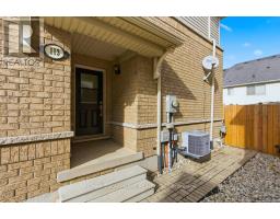 This stylish home is one of 4 quad townhomes built far more recently than all the others in Waterdown (only 14 years old) and is fully freehold with no road maintenance or condo fees! Located in a great, family friendly neighbourhood, this bright rear unit offers a spacious layout with generous sized rooms! A good sized eat-in kitchen has been recently updated with new quartz counters, subway backsplash and new stainless appliances! The kitchen provides sliding doors to the lovely rear fully fenced yard with sharp stonework and a shed! The large living room has updated luxury vinyl plank flooring, recessed lighting and is well lit with a bay window looking over the rear yard! A convenient powder room completes the main floor! A hardwood staircase takes you to the upper level that has updated luxury vinyl plank flooring throughout! The spacious primary suite offers his and hers closets and an ensuite privilege to a 4 piece main bathroom! The second and third bedrooms are generous in size as well! The lower level has been finished with a cozy family room! The laundry, plenty of storage and a bathroom rough-in are in the lower level as well! A built-in outdoor storage area is located right outside the entrance door, convenient for garbage and recycling, etc. This home offers tremendous value at this price point! You rarely find a sharp, move-in ready freehold property with its own private yard at this price point! (id:61594)