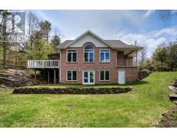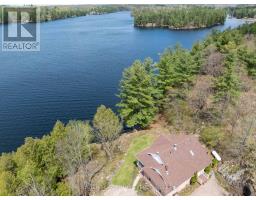 Spectacular Desert Lake waterfront home! If deep, clean, west facing waterfront is what you are looking for and a custom-built beautiful home, then look no further! Welcome to 1133 Sassy Tree on beautiful Desert Lake. This home sits perched on the hill and overlooks the lake and has gentle steps down to the waterfront. As you enter the home, you will immediately notice quality and craftsmanship throughout. The welcoming foyer opens up into a large living area with a fireplace and an open concept dining room and custom kitchen with stone counter tops an abundance of cabinets. There is a laundry room located behind the kitchen and a primary bedroom with an attached 4-pc en-suite bathroom. At the other end of the home is a second bedroom and a main 4-pc bathroom. From the dining room area, you can access a large screened in porch and open deck area that looks down towards the dock and lake. Heading downstairs you will find a massive recreation room with a walkout door through the ICF foundation into the front yard. Also located on this level is a third bedroom, a 3-pc bathroom and a large utility room. This home is serviced by a septic system and a newly drilled well. There is a storage area with exterior access to a storage room that once housed the oil tank, however, the home is now heated by a forced-air, propane furnace. Down the pathway and steps, past the trickling stream you will find a large dock, deep clean waterfront and access to all your waterfront dreams. The landscape and gardens will surely impress you and the massive rock face behind the house creates an amazing Canadian Shield backdrop. Desert Lake is located on the Canadian Shield and is one of the deepest lakes in our area, offering great swimming, boating and fishing opportunities. (id:61594)