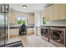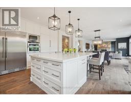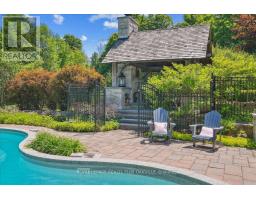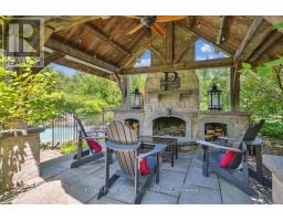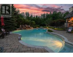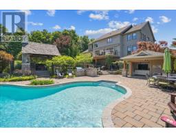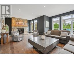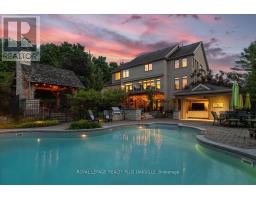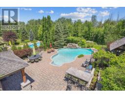 Beautifully designed executive home offering over 5,700 sq ft of finished living space on a quiet court, with exceptional privacy and stunning treed views. The spacious main floor features an entertainers gourmet kitchen with full fridge and freezer, 48-inch range, hidden coffee bar, and an oversized island with seating for six+. The kitchen opens to the eat-in area and living room with hand picked stone fireplace, plus a formal dining room that seats 16+. Main-floor laundry and a convenient three-car garage with large driveway parking for approximately 8 cars. Upstairs you'll find five generous bedrooms and three full baths, including a luxurious primary suite with oversized ensuite, two walk-in closets, and a private exercise room. A second bedroom with its own ensuite is perfect for guests or family. The finished walk-out basement is designed for entertaining, with a full bar, pool table area, dance room, bathroom, and plenty of storage. Step outside to your backyard oasis featuring a sparkling pool with waterfall, diving rock, and fountains. Enjoy both a dedicated pool house and a separate outdoor living room with stone fireplace and cedar shake roof. Host gatherings at the built-in poolside barbecue and bar area, all surrounded by mature trees for ultimate seclusion. Natural gas is at the property rare for country living! (id:61594)