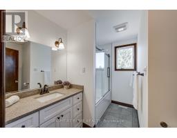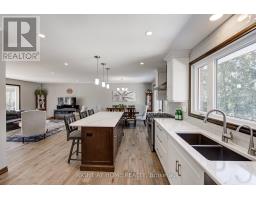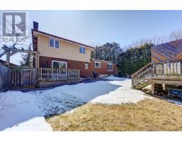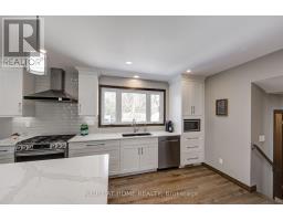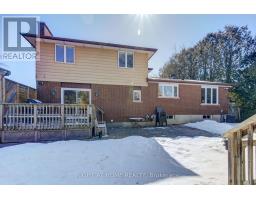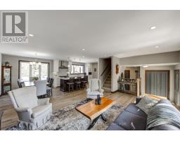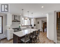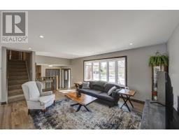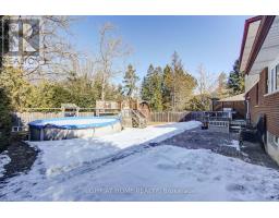 Nestled on a quiet, child-friendly cul-de-sac in the highly desirable Lockwood Park, this beautifully updated four-bedroom family home offers the perfect blend of comfort, style, and functionality. Set on a mature, treed lot with a concrete laneway and inviting covered front porch, the property delivers exceptional curb appeal and family-friendly living. The private backyard is an entertainer's dream, featuring an above-ground pool with solar heating, interlock patio, spacious decking with BBQ gas hookup, and a shed complete with 15-amp electrical service. Inside, thoughtful updates and quality finishes impress. In 2022, the home underwent significant renovations including a stunning new kitchen with quartz countertops, high-end cabinetry with dovetailed drawers, and updated appliances. That same year, most windows, the back sliding door, and the roof were replaced (excluding the two rear bedrooms and basement windows). Both the main bathroom and ensuite have been renovated this year, offering modern finishes and stylish design. The bright, open-concept main level showcases hardwood flooring and an inviting layout ideal for entertaining and everyday living. The family room features a gas fireplace with brick surround, hardwood flooring, and a walkout to the rear deck. A two-piece powder room and interior access to the oversized double garage add functionality. The garage offers 100-amp electrical service, making future EV charger installation easy. Upstairs you will find four generously sized bedrooms, including a primary suite with a two-piece ensuite. The finished lower level provides versatility with two separate rec rooms-perfect for children, hobbies, crafts, or additional living space-along with built-in cabinetry. The basement also offers a spacious laundry area with cabinetry, abundant storage, and access to a cold cellar. This exceptional home combines location, updates, and outdoor living in one of London's most sought-after neighbourhoods. (id:61594)