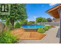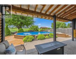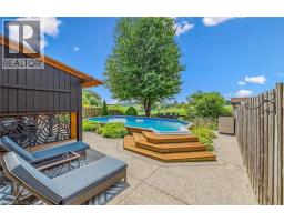 A Picturesque, stunning property with no rear neighbors and 2995 sq feet of finished living space. Welcome to 114 Delavan Dr in the West Galt portion of Cambridge. You are welcomed by an interlocking driveway, double garage and a lovely covered front porch. Inside the home presents a good sized living and dining room with hardwood flooring, a bright white kitchen with stainless steel appliances, large island and access to side deck, perfect for a BBQ. The upper portion of the home features three bedrooms and a 4 piece bathroom with updated countertop. The primary offers a walk in closet and 4 piece ensuite bath, again with new countertops. The lowest level is complete with an addition 4th bedroom, 4 piece cheater ensuite bathroom complete with new vanity, massive living room with high ceilings and a bonus room that can be used as a gym, office, games room and more. The most attractive feature in this area of the home is the walk out to the extraordinary backyard oasis. Here you have a covered porch, on ground 15 x 29 pool, aggregate concrete, and multi-level deck providing ample entertaining space. Enjoy the sunsets over the trees while hosting family and friends on a warm summers night, or cool fall evening. This beautiful family home in a highly desirable location awaits its next owner. Other updates in the home include Furnace & Heat Pump (2023), Insulated Garage Doors (2022), Bathroom Countertops (2025), Front Porch Railings (2020), Pool Pump (2017) and Pool Heater (2016). Book your showing today and don't miss out on this great opportunity. (id:61594)