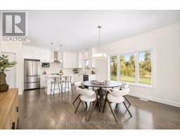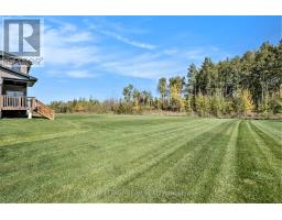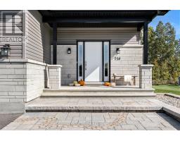Welcome to 114 Maplestone Drive, a stunning contemporary home built in 2022 by Moderna Homes, perfectly blending modern design with quality craftsmanship. Nestled on a beautifully landscaped 1.2-acre lot, this property offers unparalleled privacy with no rear neighbours and ample space on either side, creating a serene retreat just minutes from the heart of Kemptville and a convenient 30-minute drive to Ottawa. Step inside to a bright, airy living space, where impressive 9-foot ceilings and rich hardwood floors span both the main and second floors. The open layout is bathed in natural light through large windows, and vaulted ceilings in the living room, creating a warm and inviting atmosphere. The stylish kitchen is a showstopper, featuring quartz countertops, extended cabinets, a walk-in pantry and high-end stainless steel appliances, seamlessly flowing into the dining and living areas ideal for entertaining or everyday family living. Upstairs, you'll find three generously sized bedrooms, including a full main bathroom and a conveniently located laundry room. The tranquil primary suite with a walk in closet and a private ensuite featuring double sinks finish off the upper level. The finished basement offers versatile space, perfect for a home gym, media room, or additional living area, with a bathroom rough-in ready for further customization. Outside, enjoy the large deck and beautiful stone patio, perfect for entertaining or unwinding amidst the peaceful surroundings. The yard is equipped with a natural gas BBQ line and an irrigation system for easy lawn maintenance. The oversized two-car garage provides ample room for vehicles, gear, and storage, while the 200-amp service is ready for any future upgrades. With over $75,000 in thoughtful additional upgrades, including a full water treatment system with reverse osmosis, this home combines space, style, and serenity all in a quiet, convenient location. Don't miss your chance to call this your home sweet home! (id:61594)