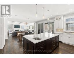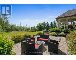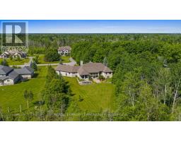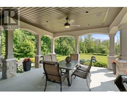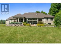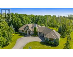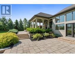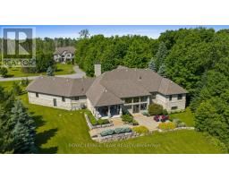 Set on approximately 1.6 acres in the Rideau Forest community of Manotick, this exquisite bungalow offers an exceptional blend of style and sophistication. From the moment you step inside, elegance is evident in every detail. Thoughtfully designed architectural elements include coffered ceilings, detailed mouldings, site finished hardwood flooring, stone accents, and fireplaces, all complemented by a timeless neutral décor. Expansive windows frame the surroundings, filling the spaces with natural light. The generous floor plan features four bedrooms, five bathrooms, and a dedicated home office with custom built-ins overlooking the front streetscape. The award-winning NKBA kitchen is a statement of craftsmanship, with extensive cabinetry, custom millwork and a Butlers pantry. Three main-level bedrooms provide private retreats, including the primary bedroom with a luxurious ensuite and a walk-in closet. The secondary bedrooms each have walk-in closets and individual sink areas, while sharing a Jack-and-Jill bathroom. The lower level mirrors the quality of the main level, with large windows, a spacious recreation room, a theatre room, a secondary bedroom, and a full bathroom. Outside, the backyard offers a picturesque retreat, set against a backdrop of mature trees. Thoughtfully designed with a blend of landscaping and hardscaping, it features a covered porch, a spacious patio, and raised armour stone accents. This magnificent property captures the essence of luxury living and offers a location that is only moments from boutique shops, restaurants, and cafés in the charming village of Manotick. (id:61594)
