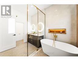 Stunning newly built custom home offering 4+1 bedrooms and 5 bathrooms with nearly 3,800 sq.ft. of luxury living in Mississauga's desirable Lakeview community.Situated on a wide 44x110 corner lot with striking curb appeal,this residence showcases a modern exterior with natural wood siding accents, exterior pot lighting,a full irrigation system with rain sensors, smart perimeter security cameras, and WiFi digital locks.A built-in two-car garage with high-lift doors, mezzanine storage loft, universal EV charger, and a private drive for two more vehicles offer parking for four.Inside, elegant finishes include white oak flooring, designer large-format tiles, pot lights with dimmers, and motion sensor closet lighting throughout.The main floor features an open living and dining area with custom accent wall and sconces, a private office, and a designer powder room with custom mirrors,integrated strip lighting, and wall-hung toilet.The chefs kitchen is a true centerpiece with a quartz waterfall island, full quartz backsplash,WiFi-enabled smart appliances, induction cooktop, wall oven, automatic heat-sensor hoodvent, pot filler, oversized sink with built-in racks, walk-in pantry with custom storage, and a coffee/bar station.A side mudroom with garage access completes the level.Upstairs, the primary retreat boasts two walk-in closets with integrated lighting and a spa-inspired ensuite with radiant heated floors, freestanding tub, wet-room shower, private water closet, wall-mounted faucets, and backlit mirrors.Three additional bedrooms include one with ensuite and walk-in closet, plus a shared bath.The finished lower level offers a large rec room, a bedroom and bathroom, plush carpet, generous storage, and an open-concept layout ideal for a recreation area or future secondary suite. Located minutes from Lake Ontario,Lakefront Promenade Park, Port Credit GO, the QEW, and the exciting Lakeview Village redevelopment, this home blends modern luxury, lifestyle, and long-term value. (id:61594)