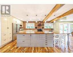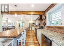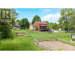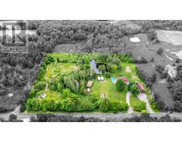 Enjoy a life less ordinary at this storybook Victorian replica home, set on over 5 picturesque acres in the heart of Campbellville. With its charming brick and board-and-batten exterior, this inviting country property offers a beautiful setting for family living, homesteading, hobby farming, or a home-based business, all surrounded by nature and open space. Outbuildings add exceptional versatility, including a 23 x 40 ft detached garage with oversized doors and an unfinished loft, as well as a 40 x 17 ft workshop featuring a roll-up door for easy equipment access and a French door walkout, offering flexible space for projects, storage, or creative pursuits. The property showcases a blend of open field and mature woods, with two chicken coops, raised garden beds planted with perennial asparagus and berries, and a second driveway leading to a large open area ideal for future use or expansion. At the centre of it all, a spring-fed pond connected to Bronte Creek creates a peaceful backdrop for everyday living, complete with a floating dock and a powered tree fort, offering a unique outdoor retreat. Inside, the open-concept kitchen, dining, and living space is filled with natural light and farmhouse-inspired charm, creating a warm and welcoming atmosphere. French doors at both the front and back lead to a covered front porch and a screened-in back porch with sun deck, extending the living space outdoors and offering multiple areas to relax and unwind. The upper level offers four bedrooms, including a primary with a 4-piece semi-ensuite. The finished walkout basement adds a fifth bedroom, 3-piece bathroom, wet bar, and wood-burning fireplace, providing additional living space for guests, extended family, or everyday flexibility. An above-ground pool and the surrounding natural landscape complete this private retreat, all just minutes to highways, schools, and local amenities, offering the perfect balance of country living and convenience. (id:61594)