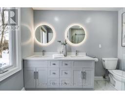 This Stunning and light filled home has many recent upgrades and designer finishes through-out. Walk into the impressive grand foyer. Luxurious hardwood floors and wainscotting warms the open concept Living and Dining Rooms that have spectacular views of the Lake, Pool & treed lot as your back drop. The Chef inspired Kitchen Features a Waterfall feature with stone counters and custom cabinetry with eat-in kitchen and built-in pantry & desk and an impressive main floor Laundry Room/mudroom that you can access from the double car garage. Currently used as a Primary Bedroom with Ensuite, this main floor bonus room with fireplace can be a Den, Library or In-law Suite, offering many options. This open concept main floor is framed with picturesque windows that showcase the breathtaking views of the lake, creating a perfect backdrop for everyday living. Entertain on the back deck, perfect for hosting outdoor dinners or lounge around the inviting above ground built in pool. The Spacious back yard is designed for fun and has a fire pit and mature trees that provides a canopy. Walk upstairs to a generous bedroom with ensuite bathroom featuring a glass shower & double vanity sinks with lit mirrors. Two additional spacious bedrooms are on this level that share a full 4-piece bathroom with tiled shower/bath and luxury finishes. Downstairs the bright walkout basement has a comfortable, yet spacious rec. room that has room for a pool table, games room or theatre room and walks out to the beautifully landscaped backyard with interlocking brick. This spectacular home has great curb appeal and allot to offer incl. 386 Km of water access on the Trent Severn. Nearby shopping, restaurants, boating and water fun. Close to the Ennismore general store & Gas, Groceries, Bridgenorth, Lakefield and Peterborough Amenities and is just 1 1/2 hours from Toronto. Endless possibilities for this 3+2 Bedroom home or 5 Bedroom investment. A must see for a family home or a great investment potential. (id:61594)
