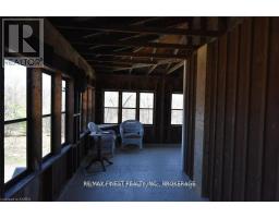 The house on the hill on 15 acres of scenic woods, trees, granite outcroppings, garden areas and your own private pond. The south facing views from the large sunroom make it all worth while to sip your morning coffee all year round. The new stylish four piece main floor bathroom has an area large enough for a laundry area if you prefer. The open concept kitchen leads to the sunroom or to the large main floor family room with hardwood floors. Upstairs the four bedrooms are all good sizes and the master has a 2 piece ensuite. There is plenty of room to add another four piece bathroom too if required. A metal roof and a newer oil tank, furnace and hot water tank as well as an updated 200 amp panel box make leaving easy. Entrance can be from the lower level or the front door with a two sided covered rap around porch large enough for a party itself. The lower unfinished basement is high and dry and provides a great area for future expansion and there is also a roughed in area for another bathroom here. The board and batten siding is real wood and the home is wrapped in insulation under the siding which makes heating costs low. The home does require some love, as they say, and although you have a beautiful brand new shiny bathroom, the kitchen does need updating, windows too. You can make it your own with your own finishing touches. It is a very good sized family home, a great place for a young family. Sitting on the hill provides privacy and panoramic views from the sunroom of the entire property. And all that road frontage makes severance possibilities an added value feature. Wake up to the sounds of birds and wildlife. Home comes with an excellent well and septic. Just 55 minutes to downtown Kingston, and not far from a large grocery store in Verona. If you like fishing you can possibly visit a different lake every day of the year in this land of lakes community. Enjoy the rural life for all its worth in this large family home that awaits a new owner. See it today. (id:61594)