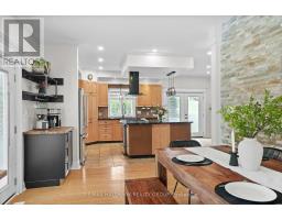 Welcome to this stunning 3-bedroom home perfectly situated next to the Ottawa River, offering incredible views, abundant natural light from its many windows, and the bonus of a private in-law suite. The home's inviting wraparound porch adds charm and plenty of space to relax outdoors, while inside, the gourmet kitchen features a gas stove, large island, and ample room for entertaining. The living room boasts a cozy three-sided fireplace, while bamboo floors and a feature dining room wall add warmth and character. The dining area overlooks the expansive back deck, which includes a fully enclosed gazebo (3.55mx4.70m) that functions as an outdoor living space, offering plenty of room to relax, dine, or entertain in comfort throughout the seasons. The main floor also includes a full 3-piece bathroom and laundry room for added convenience. Upstairs, you'll find a spacious primary bedroom, overlooking the water, paired with a truly stunning main bathroom that exudes luxury, featuring a freestanding soaking tub, oversized glass shower with rainfall showerhead, dual vanities, elegant tile work, and a vaulted window that floods the space with natural light, creating a spa-like retreat right at home. The fully finished lower level offers a home theatre room, perfect for movie nights. The in-law suite, privately set above the oversized two-car garage, provides versatile living space for extended family or guests. This home is truly one of a kind, ideal if you're looking for comfort, functionality, and a touch of something special right by the water. 24 hour irrevocable on all offers. (id:61594)