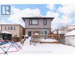 Welcome to this stunning 3+1 bedroom, detached custom-built home in the heart of prime East York. Featuring hardwood floors and pot lights throughout the main and second levels, this home offers both style and functionality. The welcoming foyer boasts tiled floors and a double-door coat closet, along with a convenient 2-piece powder room. The open-concept living and dining areas are filled with natural light from a large picture window overlooking the street. The living room features a cozy fireplace and built-in entertainment center, while the dining area flows seamlessly into the open-concept kitchen and family room. The kitchen is equipped with stainless steel appliances and a large centre island, perfect for everyday living and entertaining. The family room walks out to an oversized deck overlooking a spacious backyard. The second floor offers an oversized primary bedroom complete with a walk-in closet and luxurious 5-piece ensuite. Two additional generously sized bedrooms with large windows and closets share a 4-piece bathroom. The finished lower level features laminate flooring and pot lights throughout, with a large recreation room ideal for entertaining or a children's play area, along with space for a gym and home office. This level also includes a 3-piece bathroom and an additional bedroom with a large window. Enjoy the perks of this family friendly neighbourhood with vibrant shops, restaurants and TTC. (id:61594)