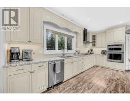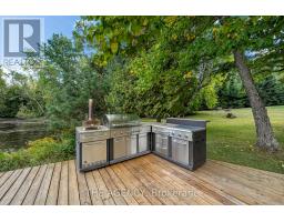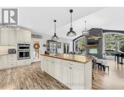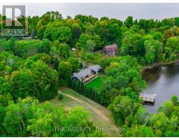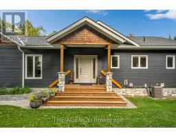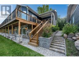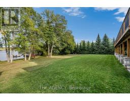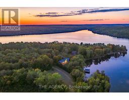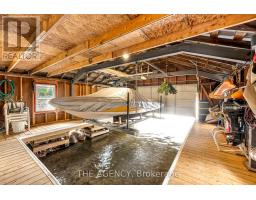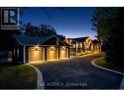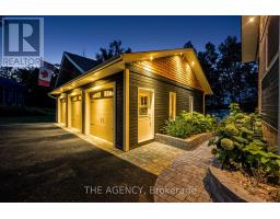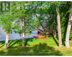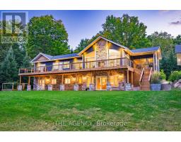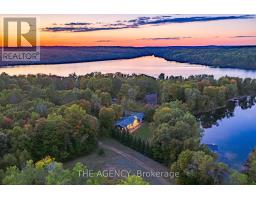 An exceptional opportunity to own a premier waterfront sanctuary on Lake Kashagawigamog, part of Haliburtons prestigious 5-lake chain, offering miles of boating with direct access to resorts, restaurants, and marina. Set on over an acre of beautifully manicured, tree-lined grounds with nearly 263 feet of private frontage, this custom-built bungalow is a rare combination of modern design, timeless finishes, and exclusive waterfront amenities. The property enjoys a private setting with no neighbour on one side, ensuring both tranquility and seclusion.The residence features a thoughtful main-floor layout with a primary suite, double office, and laundry, creating an elegant balance of luxury and convenience. A detached three-car garage with workshop and paved drive complement the retreat. The kitchen is designed to impress, complete with a striking island, walk-in pantry, built-in appliances, and an oversized fridge/freezer, perfectly suited for both everyday living and elevated entertaining. The open-concept great room with vaulted ceilings showcases a double-sided propane fireplace with hand-laid stone, while the cedar-lined Haliburton room extends seamlessly to the lakeside deck with panoramic views. The walkout lower level is equally refined, featuring a covered porch, recreation room, gym, wine cellar, and four spacious bedrooms to accommodate family and guests. Waterfront living is elevated by an extremely rare single-slip wet boathouse, expansive entertaining deck with outdoor kitchen, sandy beach, and a private vegetable garden. Peaceful, private, and thoughtfully designed for both relaxation and entertaining, this one-of-a-kind retreat offers the perfect blend of luxury and nature on one of Haliburtons most desirable lakes. (id:61594)