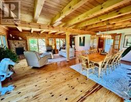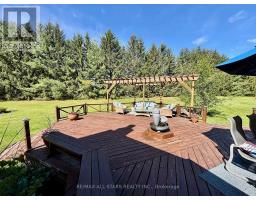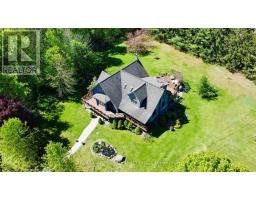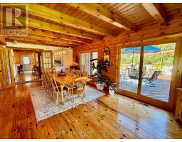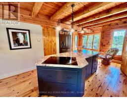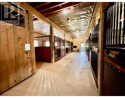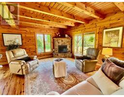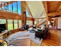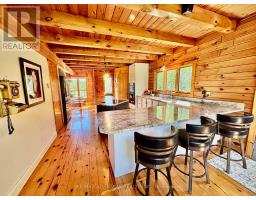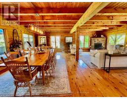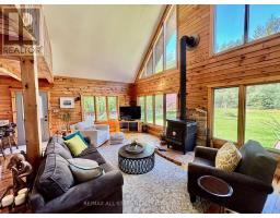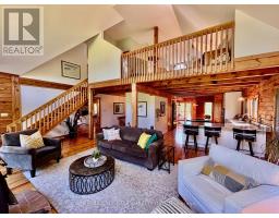 Situated on a quiet country road and surrounded by nature, this custom log home offers a rare combination of rustic charm and refined living on a breathtaking 9-acre estate. Located just minutes north of Uxbridge and conveniently close to Lakeridge Rd for quick 407 access, this property is the perfect rural retreat with urban convenience. As you enter the property, you're welcomed by a stunning 3,900 sq. ft. barn, designed for both function and beauty. Featuring six spacious hemlock stalls with automatic waterers and easy-access feeders, the barn also includes a heated tack room, 2-piece bathroom, laundry, and separate hay storage. The second floor offers a bright, partially finished space with two private entrances and walkout decksideal for an office, studio, or future guest quarters. Continue along the drive to a detached three-car garage and the main residencea showstopping log home that perfectly balances rustic sophistication with modern comforts. Inside, expansive windows flood the home with natural light and offer panoramic views of the surrounding landscape. The wrap-around decks are perfect for entertaining or enjoying quiet moments, including a spa tub tucked into the trees for year-round relaxation. The heart of the home is the chefs kitchen, complete with a generous island, a cozy breakfast nook, and an open-concept family room warmed by a classic wood stove. Entertain in style with a formal dining and living room featuring a convenient gas fireplace. Upstairs, three inviting bedrooms exude warmth and character, including a primary suite with double walk-in closets and a private ensuite bath. Outside, the beautifully manicured grounds are a true oasis, surrounded by perennial gardens and natural beauty in every direction. Whether you're seeking a full-time residence, hobby farm, or multi-use estate, this one-of-a-kind property delivers on every level. Fiber optic available. (id:61594)