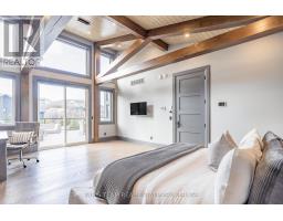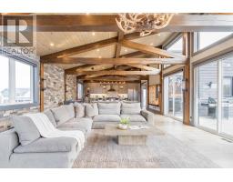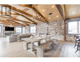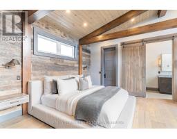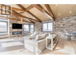 Top 5 Reasons You Will Love This Home: 1) Steps from Alpine and Craigleith Ski Clubs, this architecturally distinctive custom Nipissing Ridge chalet delivers the ultimate four-season Blue Mountain lifestyle, combining refined design, advanced smart-home technology, and resort-style outdoor living, designed with a reverse floor plan to capture ski hill views, this impressive residence offers five bedrooms and four-and-a-half bathrooms 2) Distinctive architectural details elevate the interior, including dramatic vaulted ceilings, exposed beam trusses, reclaimed wood accent walls, and a striking floor-to-ceiling stone fireplace anchoring the main living space, along with wide-plank custom hardwood floors, quartz countertops, solid wood doors and trim, televisions integrated into select showers, wall-hung toilets, and subtle in-floor lighting enhancing the refined design 3) Engineered with a level of construction detail rarely found in recreational properties, the home features a whole-home Control4 automation system providing seamless control of lighting, security, cameras, blinds, and climate, complemented by a professionally designed Dolby Atmos theatre delivering a true private cinema experience 4) Comfort and efficiency are enhanced by radiant in-floor heating in tiled areas and the garage slab, dual furnaces and air conditioning systems designed to minimize bulkheads, hot water on demand with backup tanks, and extensive sound insulation throughout the home 5) Outdoor living is equally impressive with a 37'x14' heated saltwater fibreglass pool, Bullfrog STIL hot tub, wood sauna, and covered entertainment area with natural gas fire feature and outdoor television, plus professionally landscaped grounds with irrigation and a no-maintenance steel roof complete this private four-season retreat just minutes from skiing, Georgian Bay, and Blue Mountain Village. 3,143 above grade sq.ft. plus a finished basement. (id:61594)