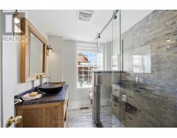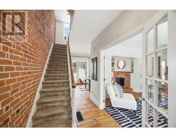 Step into the charm of downtown Kingston living with this beautifully restored historic brick end-unit townhouse, where timeless character meets modern comfort. Completely renovated and truly move-in ready, this stunning home offers 1,763SF across three finished levels, filled with natural light, warmth, and thoughtful upgrades throughout. Inside, you'll love the rich character of exposed brick interiors, paired perfectly with stylish contemporary finishes. The cozy living room features a gas fireplace (2024), creating the perfect space to relax or entertain. The heart of the home is the bright, fully renovated kitchen (2024) with new appliances and heated floors, flowing seamlessly into the dining area with patio doors leading to a private backyard patio - ideal for summer dinners and morning coffee.The second floor offers two bedrooms and a full bathroom. The second bedroom features a rare bonus: an attached office/studio surrounded by windows, perfect for working from home, creating, or studying. The third floor is a showstopper, featuring a large primary bedroom suite complete with a walk-in closet, full ensuite bathroom, and patio doors opening to your own balcony retreat.With three bedrooms, two full bathrooms with heated floors, and a newly added main floor powder room (2025), this home delivers both space and functionality. Additional updates include a tankless water heater (2023), a new washer and dryer (2025), and a backyard shed (2021) for extra storage.Outside, enjoy beautifully updated curb appeal with front and side landscaping completed in 2024, plus the convenience of backyard parking with interlocking brick.All of this is located just steps to downtown Kingston, with easy walking access to shopping, restaurants, the waterfront, Marina, Queen's University, schools and hospitals. A rare opportunity to own a one-of-a-kind historic home in one of Kingston's most sought-after locations. This is downtown living at its finest. (id:61594)