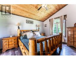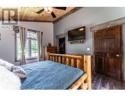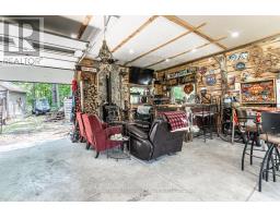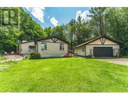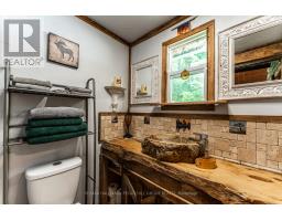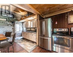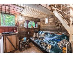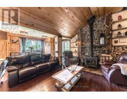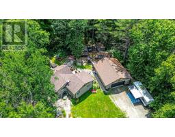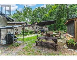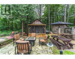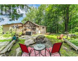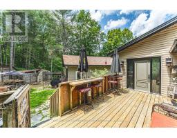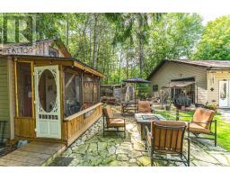 RAISED BUNGALOW RETREAT WITH THOUGHTFUL UPDATES, LAKE ACCESS, DREAM GARAGE & BUNKIE! Tucked into the trees on a quiet year-round road, this character-filled home offers shared lake access just steps away, with a 30-ft dock waiting for your next swim, paddle, or sunset view (the dock is located on municipally owned land). Set on a 100 x 199 ft private lot with a fire pit, patio area, and newer hot tub. A massive detached garage (2021) showcases heated concrete floors, a wood stove, Murphy bed, bar, one insulated front garage door (19 x 9), an insulated full-size rear garage door (9 x 8), pine and barn board walls, a drywall ceiling, 100 amp service and surround sound wiring. A rustic, fully furnished 3-season bunkie has a screened-in porch, outdoor bathroom and shower, pine ceilings, electric fireplace, kitchenette, and bar fridge. A well appointed outdoor 3 season bathroom with shower accommodates all guests. Inside the main home, youll find vaulted pine tongue and groove ceilings, barn board feature walls, and rich hardwood flooring. The bright living room is anchored by a custom stone wall built with locally sourced stones and a cozy wood stove. The galley-style kitchen features stainless steel appliances, slate tile flooring, a newer tile backsplash, and a custom-built double pantry finished in pine and barn board. The generous primary bedroom offers a vaulted ceiling, deep closet, and a walkout, while the bathroom showcases a live-edge wood vanity, hand-carved Brazilian stone sink, travertine backsplash, and a Bluetooth-enabled light fixture. With double-insulated exterior walls, a fully insulated crawlspace, 200-amp service, a newer propane furnace, newer roof, updated HRV system, a 500 ft drilled well with a clean water sample, plus an addition completed in 2017, this property delivers character and cottage-country appeal just 1 hour from Barrie, 30 mins to Orillia, and 20 mins to downtown Gravenhurst. (id:61594)
