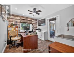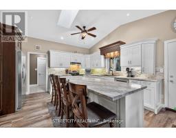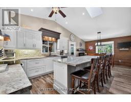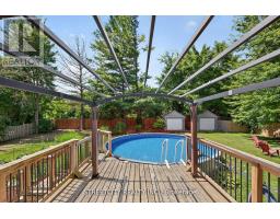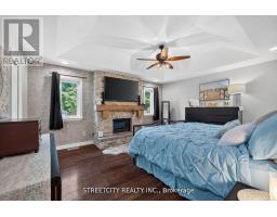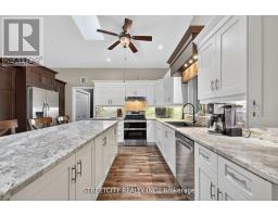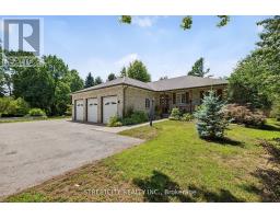 Where Urban Sophistication Meets Secluded Country Prestige. Tucked within a private, tree-lined setting just minutes from Highway 401 and the airport, this exceptional estate offers a rare blend of convenience and tranquility-ideal for those who value both privacy and accessibility. A true standout is the extraordinary three-car garage, thoughtfully designed for automotive enthusiasts or skilled craftsmen. Featuring oversized doors, soaring ceilings suitable for a hoist, a mezzanine for added storage, and a private staircase to the fully finished lower level, it's far more than a garage-it's a rare, purpose-built workspace. The outdoor living experience is equally refined, with lush landscaping, multiple decks, a sparkling pool, serene koi pond, and intimate patios that create a private oasis for relaxation and entertaining. Inside, over 3,500 sq. ft. of finished living space showcases warm, elegant design. Highlights include custom wood beam fireplace mantels, stylish accent walls, and a barn-style door opening to a chef-inspired kitchen with premium appliances and generous workspace. The primary suite offers a luxurious retreat with a cozy fireplace and spacious layout. Three full bathrooms and a powder room provide both comfort and function. The fully finished lower level features a versatile in-law suite with in-floor heating, accessible from the main level, garage, or a private entrance-ideal for multi-generational living or income potential. This is a rare offering-where refined living, exceptional functionality, and peaceful surroundings come together seamlessly. (id:61594)