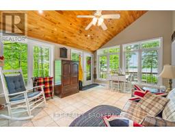 Welcome Home!! This beautiful 2+2 bed, 2+1 full baths custom-built, raised bungalow on private Cole Lake could be the home you've been dreaming of.. 300 feet of waterfront and 1.6 acres on lovely Cole Lake. Beautiful views from the new wrap around deck. Wood vaulted ceilings throughout the main level, with an open concept kitchen and living room with gas fireplace. The primary bedroom has a large ensuite with double sinks and jet tub. The lower level is a walk out with a gas fireplace in the second living room and also has a kitchenette. Excellent swimming right off the dock and a great lake for fishing. Close to amenities in Verona, and Rivendell golf course. Garage has heated floors and a large garage door screen, and is completely attached to the home for easy access. Includes all appliances and furniture; Boat and motor, lawn tractor, snow blower and golf cart can be included in negotiations! (id:61594)