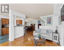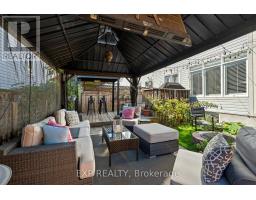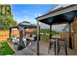 This stunning 3 bedroom, 3 bathroom end-unit townhome is just steps from the heart of Manotick village, offering an unbeatable combination of location, charm, and custom upgrades. A tiled foyer with additional custom windows sets the stage with views that draw you into the home from the wraparound front porch, while providing convenient access to the garage and a powder room. The main floor features beautiful hardwood flooring, and custom craftsman-style wainscotting throughout, enhanced by pot lights and custom window shutters. The kitchen offers ample counter space, tons of cabinetry, and a breakfast bar, creating a warm and functional space for everyday living and entertaining. Upstairs, the spacious primary retreat boasts a large customized walk-in closet, beautiful flooring, and a double-sided fireplace that adds warmth and romance to both the bedroom and the spa-like ensuite, complete with a large roman tub and separate shower. Two additional bedrooms and a full bath complete the upper level, including one with custom millwork that makes it ideal for a home office, study, or craft room. Every room feels light-filled and thoughtfully designed, blending comfort with character. The lower level is made for entertaining, with exposed brick accents, a cozy family room, and a custom games area with a dart board. This versatile space is perfect for movie nights, game nights, or simply relaxing with family and friends. Outdoors, the fully fenced backyard extends your living space with a custom four-tier deck offering multiple zones to BBQ, lounge with friends, watch TV, or enjoy a drink at the bar. With its mature landscaping and private feel, its a true summer retreat. With boutique shops, restaurants, schools, parks, and the Rideau River just a short stroll away, this property offers a rare chance to live in a vibrant community while enjoying a home full of upgrades, thoughtful details, and timeless character. (id:61594)