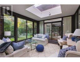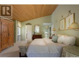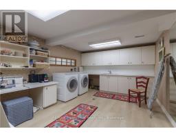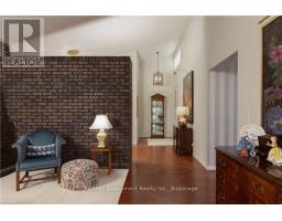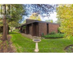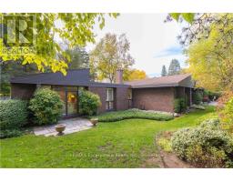 Incredibly well built contemporary home with the finest construction and materials and an interior that boasts a timeless and airy feeling.The entrance welcomes you to the foyer featuring a striking accent wall,setting the tone for design elements that unfold throughout this 3,128 sq ft sanctuary.Natural light becomes the home's greatest asset,flooding every space through expansive floor-to-ceiling windows that create breathtaking sight lines and seamless indoor-outdoor connections.The LR showcases vaulted ceilings,gas f/p with a distinctive brick feature wall that serves as both warmth & an artistic focal point.A separate DR provides versatile entertaining.The kitchen features integrated b/i appliances, skylight,breakfast nook,& w/i pantry for storage.The adjoining FR offers a casual place to relax by the cozy wood burning f/p & w/o to the cozy 4-season Garden Room.The Garden Room emerges as pure enchantment,bathed in natural radiance from its wall of windows overlooking patio spaces,enhanced by 3 skylights that create an almost ethereal atmosphere thru/o changing seasons.Tucked privately away on the east side of the home,the principal bedroom offers,a cathedral tongue&groove willow ceiling, w/i closet and 4 pc ensuite plus yard access through the walkout patio doors. 2 addt'l bdrms feature floor-to-ceiling windows & double closets for optimal storage.Below, the LL maximizes functionality w/ a finished rec room,oversized laundry & craft area,3 pc bath, workshop,w/i cedar closet & addt'l storage areas for all your organizational needs.Exterior craftsmanship shines through with cedar roof,siding & soffits.The double garage features a carport area w/parking for 12 vehicles, granite cobblestone drive hails from streets in Toronto. A very private & special home for special buyers looking for an easy living single story home who aren't looking for cookie cutter. LUXURY CERTIFIED (id:61594)