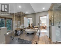 Welcome to your private retreat - this stunning custom-built home (2017) sits on 17 acres of serene countryside, offering over 6,345 sq. ft. of above grade luxurious living space. Designed with both elegance and comfort in mind, the home showcases oversized windows, luxury finishes, hardwood flooring, heated washroom floors and recessed lighting throughout, creating a warm & inviting atmosphere.The heart of the home is the expansive chefs kitchen, featuring a generous center island perfect for family gatherings or entertaining.The kitchen flows seamlessly into the family room, highlighted by beautiful waffle ceilings and large windows that bring in natural light. The massive primary suite is a true sanctuary, complete with its own lounge and study, plus a spa-inspired 5-piece ensuite featuring dual vanities and a shower with two shower heads. The 2nd and 3rd bedrooms boast floor-to-ceiling windows, filling each space with breathtaking views. For entertainment and relaxation, the home offers an impressive array of amenities: a recreation room with walkout to the heated outdoor pool, a soundproof private theatre, treehouse, large garden bed with dedicated water and power for growing fruits or veggies, and an entire third-floor retreat with yoga-workout space. Whether you are hosting intimate movie nights or morning meditation sessions, this home caters to every lifestyle. Step outside to multiple outdoor seating areas, thoughtfully designed for large family dinners or gatherings with friends, all surrounded by the peaceful expanse of your own private 17 acres! ***Out of the total 17 acre lot, the West side of the property features approximately 10 acres of crop land that can be rented to a farmer if you desire, while the East side of the property the house is situated on features approx. 7 acres of green space/grass. Building permit for 1000 Sq Ft barn on West side of property. Opportunity to acquire $20k of equipment to build your own greenhouse, if desired.*** (id:61594)