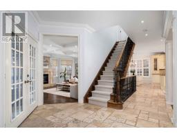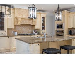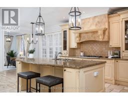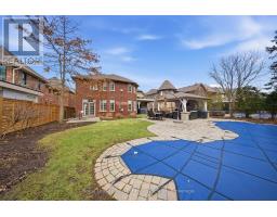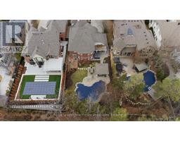 Tucked at the end of a quiet cul-de-sac in the prestigious Valleyview enclave of River Oaks, on one of North Oakville's most desirable streets, this exceptional home offers a rare double ravine setting, fronting onto a wooded ravine & backing onto Sixteen Mile Creek. Premium 60 x 174 ft south-facing lot providing a remarkable sense of privacy, with no homes in front or behind. Awarded 'Best Custom Home' & finalist for 'Best Architectural Design,' this upscale residence offers over 5,500 sq ft of total living space with 4 + 2 bedrooms & 5 bathrooms. The main floor layout features gracious principal rooms, 9-ft smooth, coffered/waffle ceilings, upgraded trim, crown moulding, hardwood and travertine floors. Large windows fill the home with natural light and showcase the surrounding views. A formal living room with built-ins and a separate dining room create elegant spaces for entertaining, while the impressive 20 x 20 ft great room is anchored by a floor-to-ceiling stone fireplace. The chef's kitchen features custom cabinetry, granite & travertine surfaces, pantry, built-in s/s appls incl a gas range, opening to a bright breakfast area and den with walk-out. Upstairs, four generously sized bedrooms and three full bathrooms await. The primary bedroom retreat features a fireplace, balcony overlooking the ravine, two walk-in closets & gorgeous marble ensuite with soaker tub & frameless glass shower. The finished lower level includes a media room with projector, guest/nanny suite with 3-pc bath, home office or 6th bdrm, gym/multi-purpose space & ample storage. The spectacular resort-style backyard features an in-ground pool, hot tub, and covered cabana with gas fireplace and outdoor TV, all set against the ravine backdrop. Massive 497 sq ft garage & total parking for 8 cars. Located near top public/private schools incl: Rotherglen, White Oaks S.S rated 8.8 per Fraser Institute, brand new 65,000 sq ft Sixteen Mile Sports Complex, grocery, shops, highways 407/403. (id:61594)