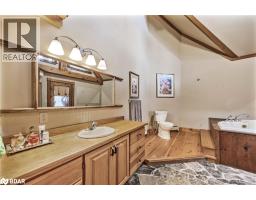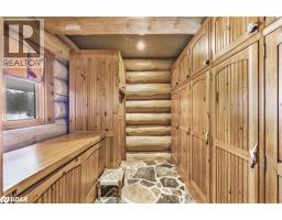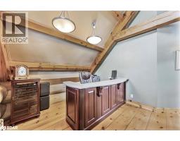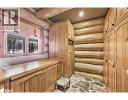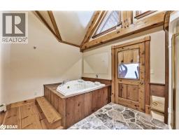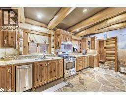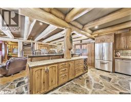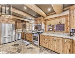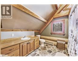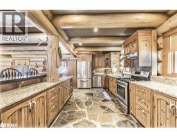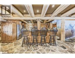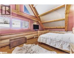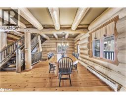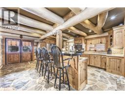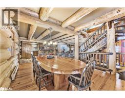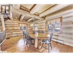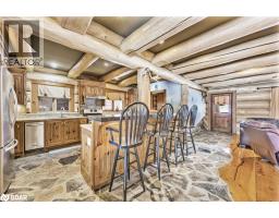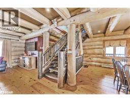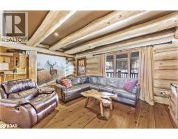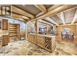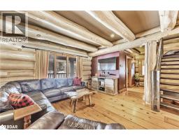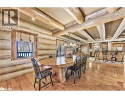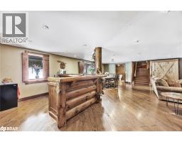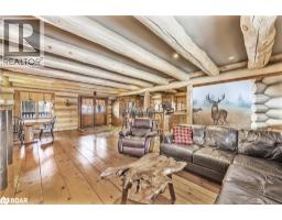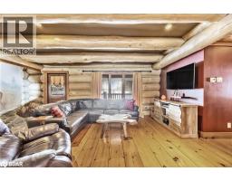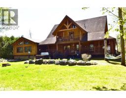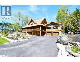 Welcome to 118 Highland Drive, Oro-Medonte. Discover the charm and craftsmanship of this stunning log home in the heart of Horseshoe Valley. Featured in the movie The Christmas Chronicles starring Kurt Russell, this home radiates warmth and comfort, complemented by award-winning landscaping and a breathtaking 3-tier pond a tranquil highlight of the property. Step inside to a spacious foyer with tile flooring which leads into a cozy yet expansive rec room with rich hardwood floors. This level also features a beautiful wet bar, a comfortable bedroom, and a 4-piece bathroom, ideal for entertaining or hosting guests.The open-concept main floor is designed for modern living. The kitchen dazzles with granite countertops, stainless steel appliances, and a breakfast bar, flowing effortlessly into the dining and living room. A walk-in pantry with a built-in freezer and second fridge provides exceptional storage, while a stylish powder room completes this level.The second floor offers two generously sized bedrooms, each with its own ensuite. The primary suite boasts a walkout to a private balcony overlooking the backyard and includes a convenient laundry area. A bright office space and soaring cathedral ceilings with wood beams enhance the airy ambiance of the home.The heated garage, complete with an entertainment room above, blends utility with style. Outdoor living is equally impressive, with multiple walkouts to covered porches, including a wrap-around porch and private balconiesperfect for soaking in the peaceful surroundings. You will love the cleanliness and efficiency of the water radiators and in-floor heating, ensuring consistent warmth and a clean, comfortable atmosphere throughout.Situated just one minute from Vetta Nordic Spa, five minutes from Horseshoe Valley Resort, and close to Craighurst amenities and major highways, this property offers a harmonious blend of natural beauty and unmatched convenience. (id:61594)