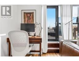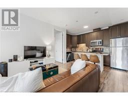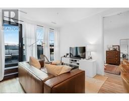 $442.16 MonthlyStep out onto your private walk-out patio, one of the few in the entire building, and enjoy a perfect setting for outdoor relaxation or entertaining. This beautifully appointed, south/east-facing one-bedroom suite captures sweeping views of downtown Hamilton and the Escarpment. Inside, the open-concept design showcases a modern kitchen with granite countertops, extended-height cabinetry, and stainless steel appliances. Additional highlights include in-suite laundry, a spacious walk-in closet, one storage locker, and an owned parking spot. Set in the heart of the city, you’re just steps from Gore Park, Starbucks, the GO station, and the lively James Street North scene—with Bayfront Park and highway access only minutes away. (id:61594)
