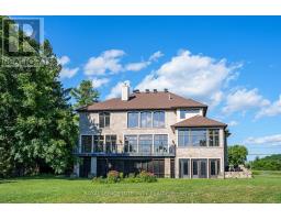 Perched along the serene Rideau River, this magnificent Italian-style villa seamlessly blends timeless elegance with modern luxury. Spanning over 7,400 sq. ft. of meticulously crafted living space, the residence delights at every turn with breathtaking river views, exquisite craftsmanship, and luxurious amenities. Beyond the dramatic 20-foot marble foyer that makes an unforgettable first impression, the home unfolds with graceful elegance. Soaring 10-foot ceilings and rich hardwood flooring flow throughout the main level, while multiple rooms showcase exquisite tray ceilings with recessed lighting, creating an ambiance of refined warmth. The formal dining room impresses with its 14-foot arched ceiling and stunning arched window that fills the space with natural light while framing picturesque outdoor views. The gourmet kitchen features a 13-foot granite island, top-tier Viking appliances, and custom walnut and Pashmina White cabinetry, complemented by a walk-in pantry for effortless entertaining. The adjoining breakfast area and family room bathe in natural light and offer panoramic water views, enhanced by a convenient wet bar and rough-in elevator. The main floor also includes a spacious executive office with private balcony access, along with a full bathroom that doubles as a guest suite. Upstairs, four bedroom suites each boast generous walk-in closets and spa-like Ensuite offers a massage shower & granite counter tops. The walkout basement serves as a versatile retreat, featuring high ceilings, oversized windows, a fifth bedroom, and a full bath. Enjoy whole-home indoor & outdoor audio system. Outside, the home's full stone façade exudes sophistication, while the expansive 650 sq. ft. balcony and private dock invite you to enjoy the breathtaking riverfront setting. Every detail of this exceptional residence has been thoughtfully designed to deliver an extraordinary living experience. (id:61594)