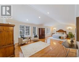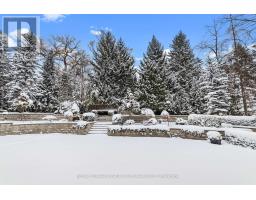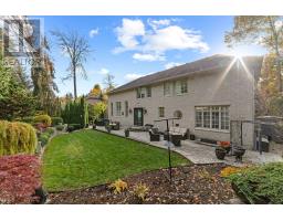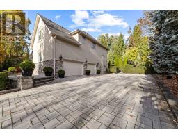 Rarely offered original owner home on a picturesque, tree-lined, family-friendly street in the heart of prestigious Lorne Park. Set well back from the road and surrounded by mature trees and lush gardens, this custom residence offers an estate-like setting on an exceptionally private, pool-sized lot exceeding 18,000 sq ft. The timeless stone, stucco and brick exterior in warm earth tones is enhanced by extensive hardscaping, including a wide driveway, walkways, porch and patio areas. An oversized garage provides parking for two vehicles plus storage, while the expansive driveway accommodates over eight cars. Offering approximately 4,000 sq ft of thoughtfully designed living space, this executive home features a grand double-door entry to a spacious foyer and an impressive layout ideal for family living and entertaining. The main level includes a private den with custom built-ins, a formal living room with gas fireplace, and an oversized dining room with direct access to the renovated kitchen. Completed in 2020, the kitchen showcases a large centre island, Miele convection oven and cooktop, built-in microwave, ample storage, and a walkout to the backyard. The two-storey family room features custom built-ins and a gas fireplace. Hardwood floors grace the principal rooms, open staircase and upper level. A functional mudroom with built-in cabinetry, sink, extra freezer and garage access adds convenience. Upstairs, the expansive primary suite spans the rear of the home and includes a walk-in dressing room and renovated five-piece ensuite with double vanity, soaker tub and separate shower. Two additional bedrooms share a renovated Jack and Jill bathroom, while a fourth bedroom with walk-in closet enjoys its own renovated three-piece bath. The private backyard retreat features a pond, tiered gardens, multiple seating areas, and two exterior gas lines for barbecues. Ideally located close to the lake, Waterfront Trail, parks, top schools, shopping and easy highway access. (id:61594)
