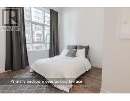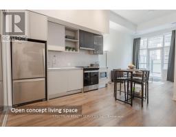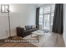 Welcome to this stunning 1-year-new, 2-bedroom, 2-bathroom condo offering 770 sq. ft. of beautifully designed living space at Distrikt Trailside in Oakville. Showcasing award-winning finishes and soaring 15-foot ceilings, this suite feels bright, expansive, and effortlessly modern. A true standout feature is the rare 250+ sq. ft. private executive terrace with ground floor entry - complete with a gas BBQ hookup and walk-out access directly from the living room - creating a seamless indoor-outdoor living experience perfect for entertaining, dining, or relaxing in your own private retreat. The thoughtfully designed layout maximizes space and functionality. The primary bedroom overlooks the terrace and features a stylish 3-piece ensuite. A well-planned split-bedroom design offers privacy, making this home ideal for professionals, small families, downsizers or investors alike. This unit also includes one owned underground parking space and locker for added convenience and value. Residents enjoy an exceptional collection of amenities including 24-hour concierge service, a state-of-the-art fitness centre, rooftop terrace with BBQs and panoramic views, pet spa, secure bicycle storage, and ample visitor parking. The beautifully curated common areas evoke the sophistication of a boutique hotel. Ideally located just steps to Fortinos, Starbucks, fine dining, and community centres, and moments from the scenic trails of 16 Mile Creek. Close to Oakville Trafalgar Memorial Hospital, GO Transit, Highways 407 & 403, and just a short drive to Lake Ontario, this residence offers the perfect blend of luxury, lifestyle, and convenience. An exceptional opportunity to own a nearly new condo with rare outdoor space in one of Oakville's most desirable communities. (id:61594)