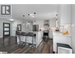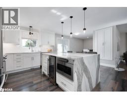 Whether you're a contractor running a business, a hobbyist needing serious workspace, or a family seeking flexible multi-generational living, this property delivers. A new in 2019 875-sq-ft detached shop with two overhead doors, side-mount openers, heated floors, office, and a two-piece washroom offers the ideal setting for a home-based business, workshop, or hobby area. A self-contained in-law suite with its own entrance provides private, comfortable space for adult children, parents, or guests. Natural gas service a rare advantage for rural properties ensures efficient, affordable heating. Minutes from Barrie, the home combines country tranquility with quick access to urban amenities, shopping, and commuter routes. Renovated top to bottom in 2019, the residence blends modern style with lasting quality. The exterior showcases a new roof, soffit and fascia, a striking stone-and-siding facade, professional landscaping, a paved double-wide driveway, interlock details, and a dramatic three-light front door. A large pressure-treated deck with a kitchen walkout overlooks farm fields, creating a perfect space for outdoor entertaining or peaceful evenings. Inside, the designer kitchen boasts quartz counters with waterfall edges, a gas stove with Euro-style range hood, built-in microwave, wine fridge, and soft-close cabinetry. The living area is anchored by a Napoleon electric fireplace wrapped in sleek tile, while spa-inspired bathrooms include a walk-in shower, floating vanities, and a basement soaker tub with tiled surround. Features 200-amp service, updated plumbing, built-in laundry cabinetry, and a central vacuum with toe-kick sweep. Downstairs, the in-law suite adds a full kitchen with island, comfortable living area highlighted by another Napoleon fireplace, and a stylish bathroom. With rare natural gas, a versatile shop, and a complete renovation, this home offers a move-in-ready blend of rural charm, modern efficiency, and lifestyle possibilities. (id:61594)