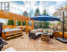 Meticulously maintained and updated home located in the heart of Oak Ridges, backing onto protected greenspace with breathtaking views and direct access to walking trails. This exceptional property features a gourmet kitchen and breakfast area with a walk-out to a spectacular backyard retreat, complete with an oversized deck, shaded seating area, hot tub, and outdoor shower-perfect for entertaining or relaxing in total privacy. The beautifully crafted deck was thoughtfully designed and built by Paul LaFrance, a respected Canadian outdoor design expert. The sun-filled, open-concept family room offers a gas fireplace and desirable western exposure, overlooking the serene, park-like backyard setting. A main floor office with French door entry and coffered ceiling provides flexible living space and can easily be converted into a formal dining room. The upper level features four generously sized bedrooms. The primary bedroom retreat boasts double-door entry, a spa-inspired 5-piece ensuite, and a walk-in closet. The second bedroom functions as an ideal guest suite with its own 3-piece ensuite and walk-in closet. The finished lower level offers a spacious open-concept recreation room with exercise area, built-in shelving, a separate games room, and a 3-piece washroom-plus the potential for a fifth bedroom. Additional highlights include hardwood flooring on the main level, custom built-ins in upper-level closets, wrought-iron staircase pickets, ample storage, a cold cellar, and exceptional functionality throughout. Don't miss this opportunity to live in this sought-after neighbourhood close to shopping, transit, and within walking distance to top schools and parks. (id:61594)