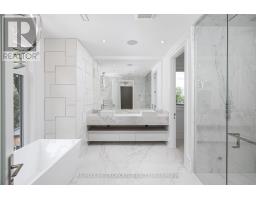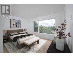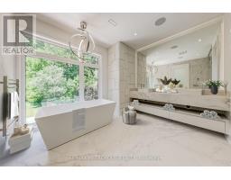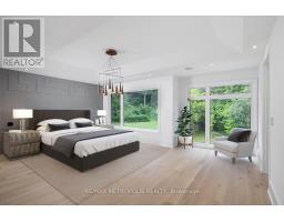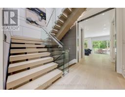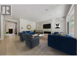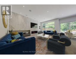 Welcome to Edenbridge-Humber Valley. This elegant 4+1 bedroom, 7 bathroom custom smart home is situated on a quiet ravine lot in one of Toronto's most prestigious communities, just steps from Lambton Golf & Country Club, James Gardens, and the Humber River. The breathtaking exterior is perfectly matched by the homes luxurious interior design. The modern home has 5,762 sq ft on all levels and showcases three striking 5x10 Italian slab stone gas fireplaces, contemporary skylights, heated stone floors, and 3/4-inch engineered white oak hardwood throughout. Custom Scavolini cabinetry, a Garaventa lift elevator, in-wall vacuum, sauna with steamer, and a full security camera system complete the homes exceptional details. The home is supported by Control4 Home Automation allowing seamless control of lighting, climate, security, and entertainment from anywhere in the home or remotely. The stunning open-concept kitchen features light-toned finishes with built-in premium Thermador appliances, an oversized island, and Italian stone counters with matching backsplash, complemented by a well-appointed butlers pantry. Adjacent to the kitchen, the spacious family room invites relaxation with ample natural light and views of the backyard, while the formal dining and living rooms provide elegant spaces for entertaining guests. Each large, sun-filled bedroom offers a luxurious ensuite and a spacious walk-in closet, with the primary suite featuring his-and-hers closets and expansive windows overlooking the landscaped backyard. In the recreational area, a sophisticated wet bar with Italian finishes and custom Scavolini cabinetry adds an extra touch of elegance. This custom home features an exquisite office room, two laundry rooms, a mudroom shower, and a maintenance room. This exceptional residence is complete with a two-car garage offering optional EV charging, a heated driveway and stairs, a Hydropool spa, a BBQ area, and a spacious deck that overlooks stunning natural scenery. (id:61594)
