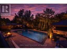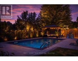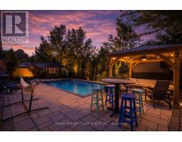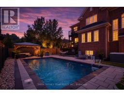 Tranquil ravine setting with inground pool, hot tub & a private backyard oasis! Beautifully upgraded Fernbrook built, 3+1 bedroom, 4 bath home offering exceptional curb appeal with professionally landscaped front & back gardens. The backyard is designed for entertaining featuring a timber gazebo, large deck, interlocking patio, inground saltwater pool, hot tub & scenic treed ravine views providing ultimate privacy. The inviting foyer welcomes you to a sun filled open concept main floor with extensive crown moulding, wainscoting & california shutters throughout. Convenient main floor office ideal for working from home or study space. Main floor laundry room with direct garage access. Gourmet kitchen showcases Silestone quartz countertops, Raywal cabinetry, ceramic backsplash, stainless steel appliances, pantry with custom pull out shelves & centre island with breakfast bar. Spacious breakfast area offers a garden door walkout to the entertainer's deck with panoramic ravine views. The impressive great room features soaring cathedral ceilings, gas fireplace with custom mantle & elegant detailing - perfect for family gatherings.Upstairs offers 3 generous bedrooms. The primary retreat features a huge walk-in closet & private balcony overlooking the ravine - perfect for morning coffee. Spa inspired 5 piece ensuite includes soaker tub, large glass shower & granite vanity. Additional bedrooms are spacious & bright with well appointed ensuite baths. Partially finished basement includes a 4th bedroom with barn door entry & a bright rec room with oversized windows offering additional living space for growing families. Situated in a highly desirable community just steps to parks, schools, trails & downtown Brooklin shops. A rare opportunity combining luxury finishes, functional family layout & resort style outdoor living in a premium ravine location! (id:61594)
