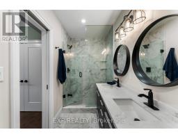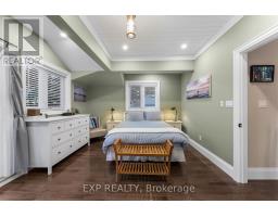 Down a quiet, dead end street with shared lake access sits this stunning modern home packed with upgrades, and it's every bit as impressive as it sounds. The jaw dropping curb appeal begins at the custom stone patio, decorative privacy screens, an elegant wrought iron fence closing in the side yard. Gorgeous landscaping all kept lush with an inground irrigation system bordered by your widened driveway. Inside the brand new front door be prepared to be wowed! Hardwood floors, pot lights, a cozy fireplace and the gorgeous open-concept layout set the stage for the stunning kitchen featuring quartz countertops, a centre island and stainless steel appliances. Upstairs, escape to your dreamy primary suite complete with a private balcony and breathtaking lake views. The fully finished basement delivers even more with a family room, 4th bedroom or office, powder room and two cold rooms Space for everyone and everything. Entertain in style out back on your large deck with pergola AND Florida room within your fully fenced, private yard complete with two large new sheds! And the Location? Sandy beaches, parks, a 9 hole golf course and the local pub all within walking distance! Modern, Magnificent. Move-in ready. (id:61594)