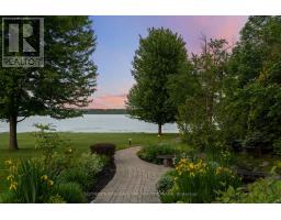Welcome to Cascadia Waters Estate - an exceptional custom-built waterfront estate on the serene shores of Lake Scugog where timeless elegance, refined comfort and the spirit of summer living converge in perfect harmony. Privately gated and masterfully hardscaped, this residence offers an exquisite blend of luxury and lifestyle, nestled just minutes from historic Port Perry and connected Trent-Severn Waterway. Crafted for both grand entertaining and intimate everyday moments, the home showcases a sunken great room crowned by soaring two-storey windows that capture sweeping lake views & flood the space with natural light. The culinary-inspired kitchen, equipped with premium Wolf appliances, flows effortlessly onto an expansive composite deck that is perfect for al fresco dining and sunset gatherings overlooking the water. A formal dining room extends to a sundeck with a built-in fireside table, while a custom-fitted office offers privacy and function in equal measure. Step outside and experience a true summer sanctuary: a heated Gunite pool, pool house, gazebo, and a spring-fed stream that flows through the property, cascading over three waterfalls before settling into three tranquil ponds. Thoughtful touches abound, including a full irrigation system, drip lines for hanging baskets & a mature, professionally designed landscaping. Above the three-car garage, a generous raw loft space offers limitless potential that is ideal for possible future guest suites, fitness studio, kids play area, or additional recreation space.The lower level exudes refined comfort, featuring radiant in-floor heating, an expansive recreation room, a climate-controlled wine cellar with a lounge-style wet bar, and a pool bathroom with direct walk-out access towards the grounds. At this estate, you can boat, entertain, unwind, breath deep and grow roots all against a backdrop of natural beauty and lakeside luxury. This is more than a home. Its a legacy. Welcome to your forever chapter! (id:61594)