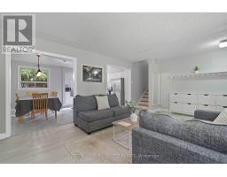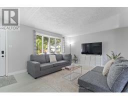 Nestled on a peaceful, tree-lined corner lot in the desirable Westminster neighbourhood, this functional 4-level side-split at 12 Kinburn Crescent offers the perfect blend of space and serenity. Step inside and be welcomed by the large, open-concept living room which flows effortlessly into the kitchen and dining area. The kitchen island is a chef's delight, offering not just ample prep space but more storage and a fantastic spot for guests to gather and socialize. The kitchen's rear door provides seamless access to the wood deck and hot tub, your private oasis for relaxation. Upstairs, the 3 good-sized bedrooms share a renovated 3-piece bathroom with convenient cheater access to the primary bedroom. The first lower level offers superb flexibility, featuring a bright family room, a second full 5-piece bathroom, and a private 4th bedroom, also perfect for a home office. The lowest level boasts a large, finished recreation room, ideal for a home gym or theatre room, plus a dedicated utility room with laundry. Outside, enjoy the convenience of a detached garage with hydro and a newer poured concrete walkway and driveway with parking for 4 cars. This prime location offers easy access to transit, scenic trails, parks, schools, the 401, and all the retail amenities you could ever need. Don't miss the opportunity to make this your new home! (id:61594)