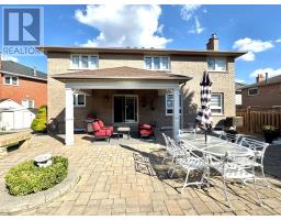 This exceptional executive home is nestled on a quiet court in a highly sought after, desirable family-friendly neighbourhood. Beautifully designed 4+1 bedrooms, 3 1/2 bathrooms home offers over 4800 sf of living space. On entry, you are welcomed by a grand 2-storey foyer with abundant natural light from a stunning large arched window above & with a majestic modern iron-picket staircase! Enjoy rich solid 3/4" oak hardwood flooring & smooth ceilings throughout. The gourmet kitchen features a b/i glass cooktop, b/i double oven, b/i microwave, granite countertop, custom cabinetry, and a family-sized breakfast area with w/o to a large covered stoned patio! The warm & inviting family room, openly connected to the kitchen, showcases a floor-to-ceiling stoned gas fireplace! The main floor also includes a private den/office & a large laundry room w/ access into the double-car garage. Upstairs, the very spacious Master bedroom offers 2 walk-in closets & a spa-inspired 6pc-ensuite featuring a soaker tub, separate glass shower stall, bidet, dual vanities! Additional bedrooms are generously-sized with ample closet space. The finished bsmt is high & bright (can be used as in-law suite), with a full kitchen, fam room, bedroom, sep laundry room, 3pc bath w/ shower, exercise room, storage room. Bsmt also has a good-sized cold cellar/cantina. Professionally well-landscaped property with sprinkler system, stone pavers, garden walls, mature trees, & lamp posts. The expansive backyard is perfect for summer entertaining & large family gatherings! Additional features include: mezzanine level in garage, long private drive fitting possibly 6 cars, garden shed, sec alarm system, Ring doorbell. Situated close to schools, parks, Go Train Station, major commuter routes, Vaughan Mills Shopping Mall, Canada's Wonderland, Vaughan Subway, New Hospital, Community Centre, & is only steps to YRT bus routes. This remarkable property offers the perfect balance of luxury living & suburban tranquility. (id:61594)