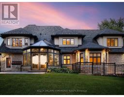 Stunning western sunset views over Philips Lake giving you a Muskoka like setting in Richmond Hill! This home is a statement of luxury, easy living and uniqueness intertwined to make your next home. Park-like setting on your double lot allows you to go for a stroll without leaving your property where you can enjoy flagstone patios, garden walls, lake view pathways, a bridge, and a serene swinging bench giving you an unmatched setting for relaxation and entertaining. Meander to nearby access of the Oak Ridges Trails for a longer hike. Set behind iron gates and framed by towering trees, this is a showpiece entrance. Greet your guests with a covered portico boasting flagstone, chandelier and stone façade as they then enter to the foyer where they find soaring ceilings and a sneak peak of you rear grounds and Philips Lake. The gourmet kitchen features premium appliances, herringbone backsplash, integrated lighting, and west facing lake views. It flows seamlessly into the sunlit dining room and cathedral-ceiling sunroom with heated floors and wraparound windows. Main floor office with extensive built-ins, stone countertops and desk. Second level accessed via elevator if needed provides two private bedrooms and an office space designed to enjoy Philips Lake day and night that can be converted to a fourth bedroom if needed. Heated floors the lower level where you will find separate living quarters boasting kitchen, family room, bedroom, storage, office nook and private courtyard to enjoy prior to ascending to the rear grounds. Enjoy a stunning wine cellar with wine tasting area. Automated blinds for your convenience, a well supports the sprinkler system, generator keeps your lights on, heated garage keeps you tinkering four seasons of the year; no detail left out! (id:61594)