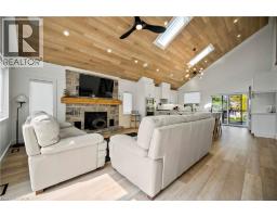 They don’t make them like this anymore. Every inch of this custom-built, four-season cottage/home has been meticulously crafted with top-tier workmanship and attention to detail. Inside, you're welcomed by an elegant, modern open-riser staircase, a cozy wood burning fireplace perfect for winter nights, and Viking appliances that anchor a chef-worthy kitchen. The home features fully wired entertainment, alarm, and camera systems, central vacuum, heated main floor and garage and dual heating and cooling through both heat pump and propane. Comfort meets innovation at every turn. Outside, the beauty continues with a brick and stone exterior that exudes timeless quality. Step onto massive decks off the main living area, ideal for cooking, entertaining, relaxing, or gathering with friends and family. The garage includes a pizza oven fireplace, in floor heating and the property boasts exterior hookups on every level for seamless outdoor cooking or living. After a day by the water, enjoy the outdoor shower under the open sky. With enough driveway and parking space to accommodate many families, this is the perfect place to call home for many! The entire structure is spray-foamed for energy efficiency and all-season enjoyment. Located in a quiet court and steps away to a family friendly park. This is more than a cottage or house—it's a legacy home near the water, built to stand the test of time. (id:61594)
