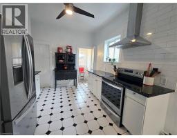 Charming and beautifully maintained century home nestled on a quiet, family-friendly street in Brantford. Thoughtfully updated throughout, this move-in-ready property offers the perfect blend of classic character and modern convenience. The home features 3 spacious bedrooms and 2 full bathrooms, providing comfortable living space for families. A welcoming foyer leads into a bright, freshly painted interior where large front windows fill the living space with natural light. The main level offers an inviting living area and a separate dining room, perfect for family meals or entertaining. The kitchen is both stylish and functional, featuring newer appliances—including a fridge with water and ice dispenser—and a tucked-away pantry for additional storage. A recently added main-floor laundry room and convenient 3-piece bathroom add everyday practicality. Upstairs, the bedrooms are bright and airy, while the renovated full bathroom features a newer vanity, sink, flooring, and modern lighting. Step outside to the fully reworked backyard with a new privacy fence and plenty of space for outdoor gatherings. The detached garage with hydro offers great potential for storage, a workshop, or hobby space. A recently paved driveway accommodates two vehicles, with additional year-round street parking available. Important updates include roof replacement (2018), professional removal of all knob-and-tube wiring, and a newer owned furnace. Rented central air conditioning and hot water heater provide added flexibility. Conveniently located with easy access to Highways 401 and 403, commuting is simple while enjoying the charm of this established neighbourhood. Close to amenities, schools, and parks, this lovingly cared-for home is ready for its next chapter. (id:61594)